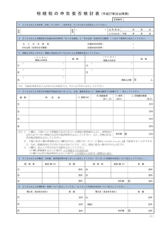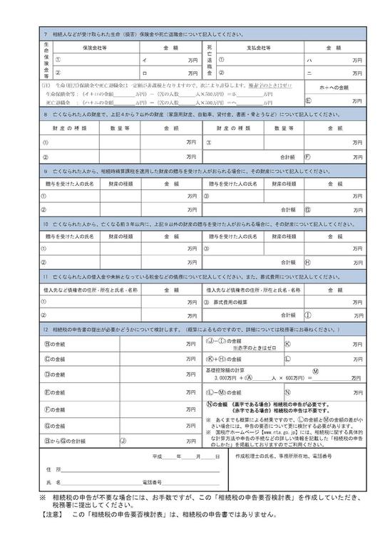 必要な資料がそろい、財産の評価を行い、一覧表を作成したところ申告は不要であることが判明しました。