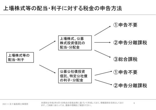 まずは、上場株式等の配当・利子に対する税金と申告方法を確認します。続いて、上場株式等の売却益に対する税金と申告方法を確認します。