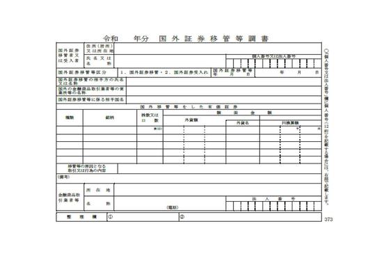 この調書は、国内の証券口座から国外の証券口座へ有価証券を移管する場合、または国外の証券口座から国内の証券口座へ有価証券を受け入れる場合に、証券会社等の金融機関から税務署へ提出されます。