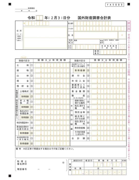 2014年(平成26年)から開始された制度であり、毎年12月31日時点で5,000万円超の国外財産を所有する日本の居住者に提出が求められているものです。