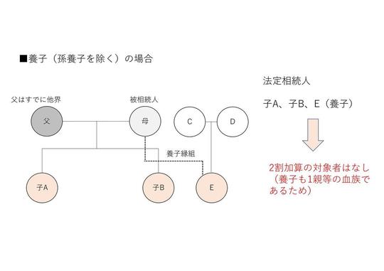 ただし、孫養子の場合は別の扱いとなりますので、詳しくは、2-2.孫養子の場合、2-4.孫養子が代襲相続人の場合をご覧ください。