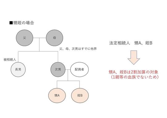 いずれの場合も相続で財産を受け取った方が、配偶者でも1親等の血族でもないため、2割加算の対象になります。
