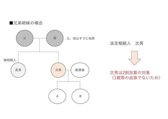 次男は長男の1親等の血族ではないため2割加算の対象になります。
