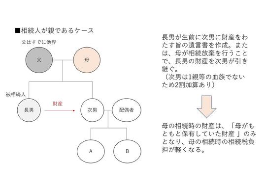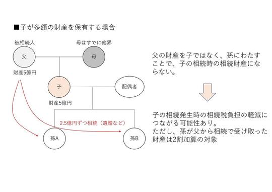 上の図にも示しましたが、子が多額の財産を保有している場合は、通常どおり父の財産を子が引き継ぐと、相続後の子の財産規模がさらに大きくなります。