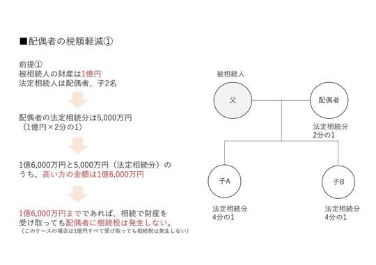 内容としては、配偶者が相続で財産を受け取った場合に、受け取った財産の金額が1億6,000万円または法定相続分のうちいずれか多い方の金額以内であれば、配偶者に相続税をかけないというものです。