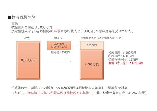 贈与税額控除は、生前贈与加算をされた財産の贈与時に贈与税を支払っていた場合に、相続税の計算上、その贈与税を差し引くことで相続税と贈与税を二重にかけることがないようにするための措置です。