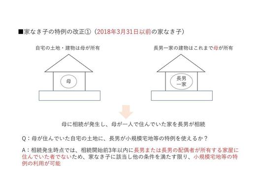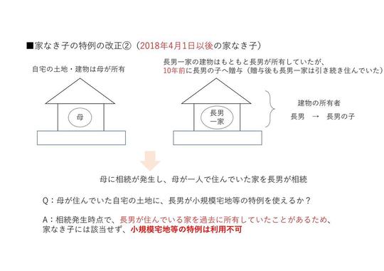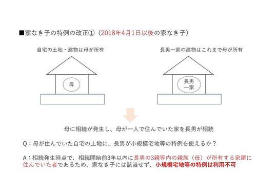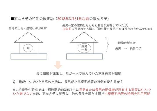 2018年4月から2020年3月までの相続であれば、2018年3月31日時点で改正前の家なき子の条件を満たしていれば、小規模宅地等の特例を利用できるようにするというものです。