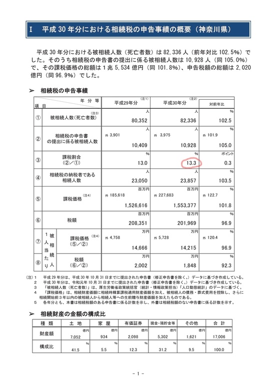 今回の画像は東京都と神奈川県の最新の課税割合を示した表です(クリックすると拡大されます)。東京都の2018年の課税割合は16.7%、神奈川県の2018年の課税割合は13.3%です。