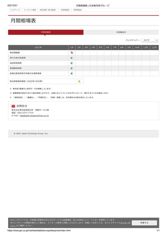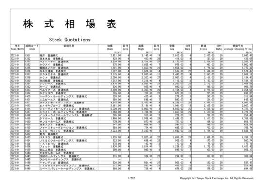 相続人の方がご自身で確認したいという場合は、終値であればロイターなどの情報ベンダーのホームページから確認できます。また、終値の平均値であれば日本証券取引所グループなどが公表している月間相場表で確認するとよいでしょう。