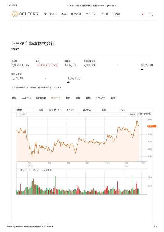 出典:ロイター 7203.T - トヨタ自動車株式会社 チャート | Reuters
