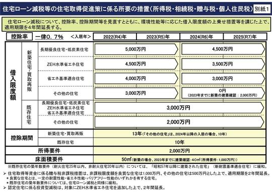 また、環境性能に応じて住宅ローン控除の限度額を上乗せしており、かつ令和6年以降の新築等については、環境性能に一定の配慮がされていない住宅(その他の住宅)で住宅ローン控除を利用できなくするなど、環境面を意識した改正内容になっています。