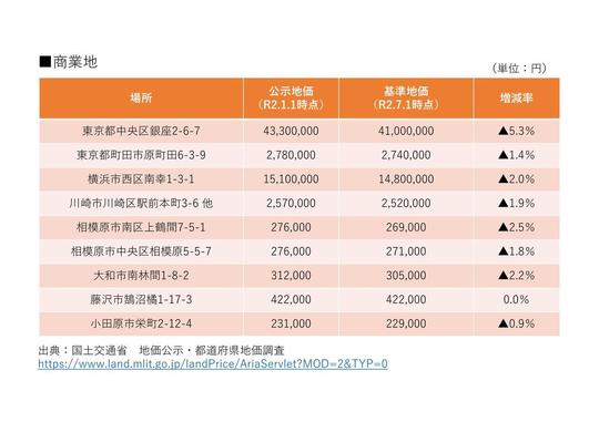 公示地価と基準地価の動きを見比べる限り、20%以上の下落は確認できませんので、少なくとも今回の結果で、東京や神奈川で特例的な減額調整が導入されることは考えづらいのではないでしょうか。