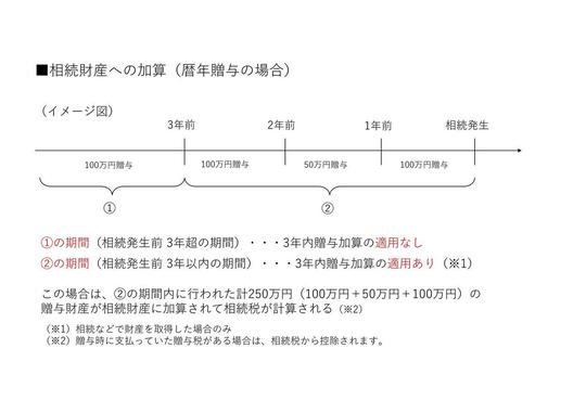 この説明資料をみると、日本も生前贈与の相続財産への加算を相続前3年以内ではなく、より長い期間にすることを想定しているのかもしれません。