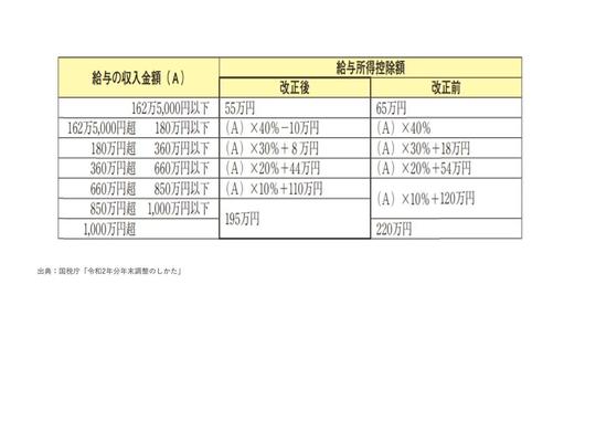 給与所得控除の金額がどのように変わるのかは、次の表をご覧ください。