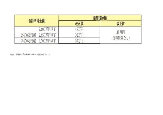 代わりに、会社員だけでなく自営業者なども含め、基本的にはすべての人が適用できる基礎控除の金額が増加されます。