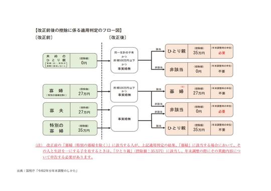 また、ひとり親控除の新設に合わせて、これまでの寡婦(寡夫)控除が改正されました。寡婦の範囲の変更や、特別の寡婦の廃止といった内容です。