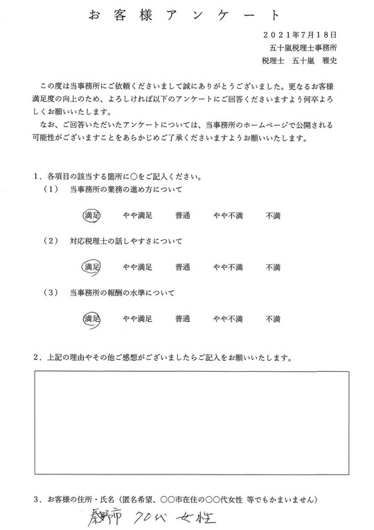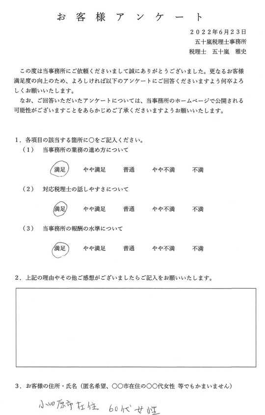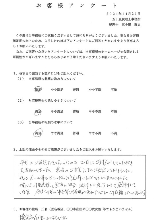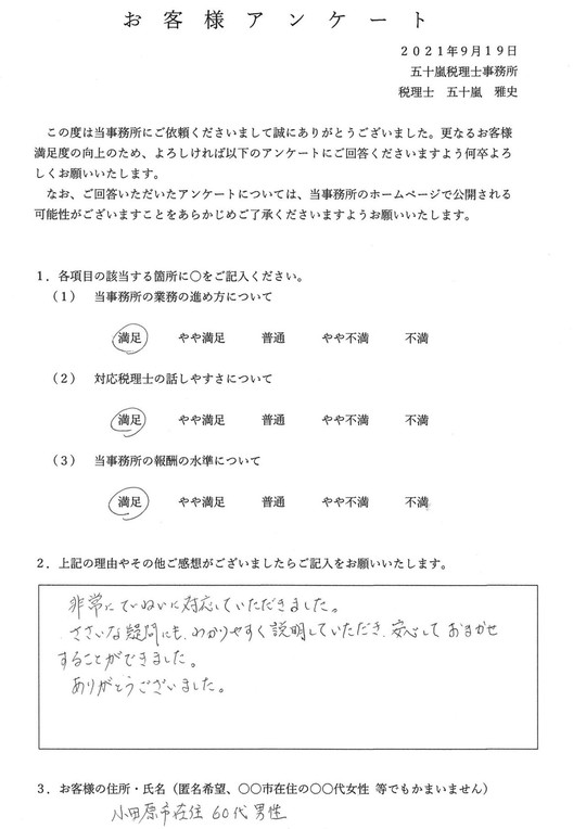 当事務所のサービスをご利用いただいたお客さまの声をご紹介します。